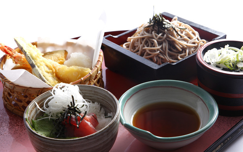 「胡麻味噌冷やしそばセット」 食欲が落ちてしまう夏に!ひんやりしたそばとつゆにさっぱりした具材の相性も抜群です。
