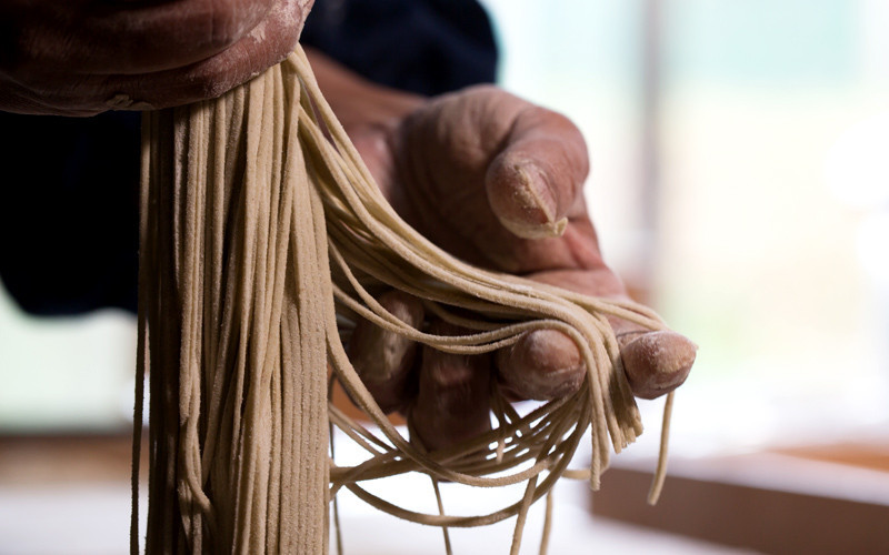厳選したそば粉を使用した手打ち麺
